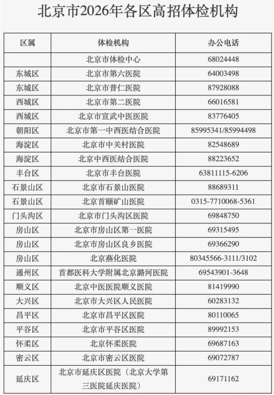 北京教育考试院日前发布《北京市2026年普通高等学校招生体检考生须知》,明确2026年高招体检时间为3月2日至3月31日。